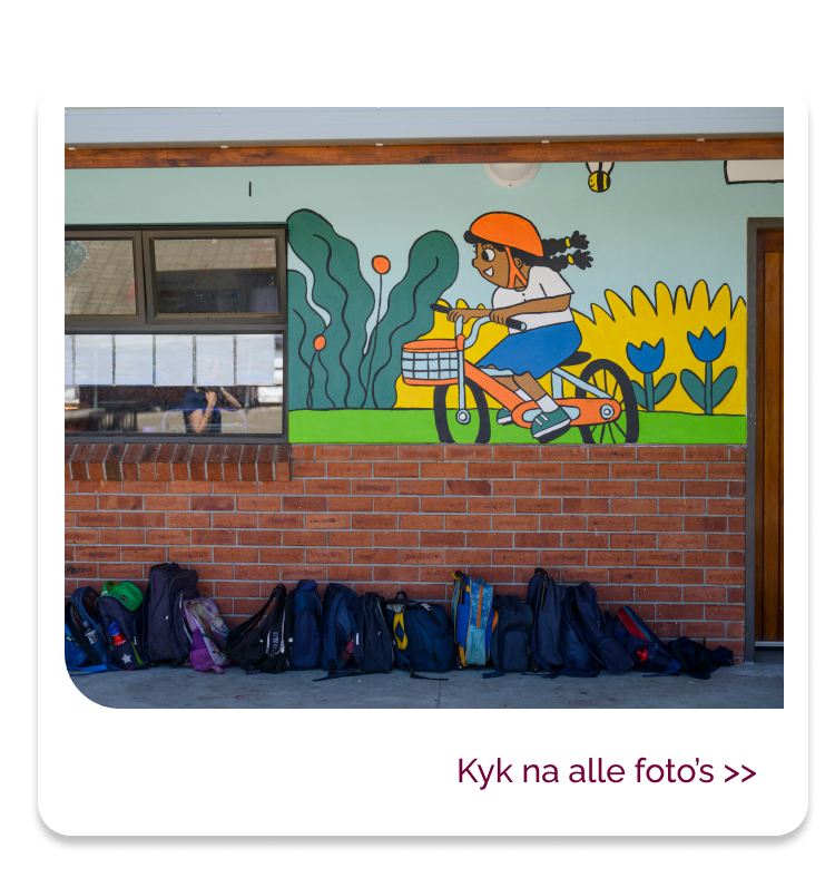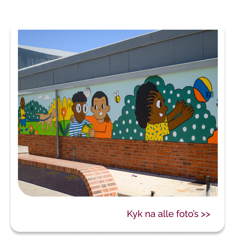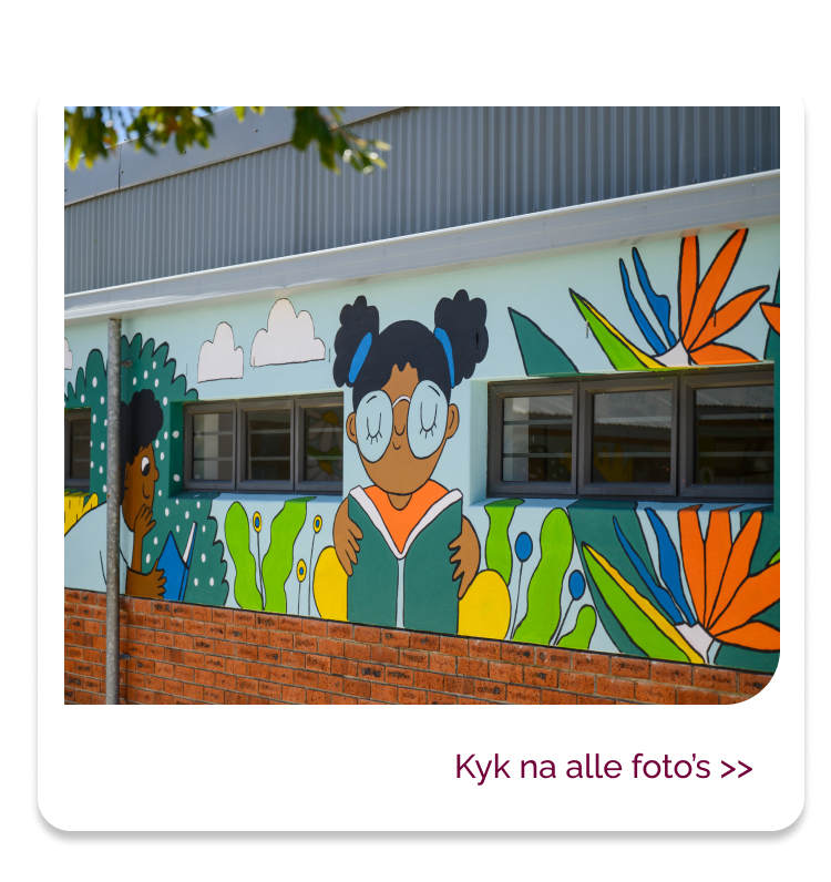 Mieke Hall, ’n dosent in Visuele Kommunikasieontwerp en Digitale Produksie aan die Universiteit Stellenbosch (US), dink al jare lank oor hoe kinders hulleself herken in boeke, klaskamers en ander ruimtes waar hulle die wêreld leer verstaan. En met haar onlangse projek by Laerskool Altena in die Strand, wat deel uitmaak van haar PhD-studie, het sy oorgegaan van dink tot doen: Saam met leerders het sy die skool se mure getransformeer met skilderye wat op die kinders se eie tekeninge, kulture en daaglikse ervarings gegrond is.