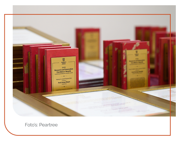 Aan die einde van Oktober het die Universiteit Stellenbosch se slimstes by die Stellenbosch Instituut vir Gevorderde Navorsing (STIAS) byeengekom vir die 2025 Toekennings vir Uitnemendheid in Navorsing en Innovasie – 'n aand wat feesviering, besinning en kameraadskap gekombineer het. Die tema was "Kennis omskep in volhoubare oplossings".