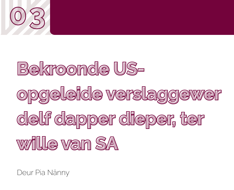 Sedertdien het hy al vir Rapport, News24 en mees onlangs vir Daily Maverick gewerk. Hy voltooi boonop sy Matie-kringloop deur nou ook as dosent in ondersoekende joernalistiek by die US klas te gee.