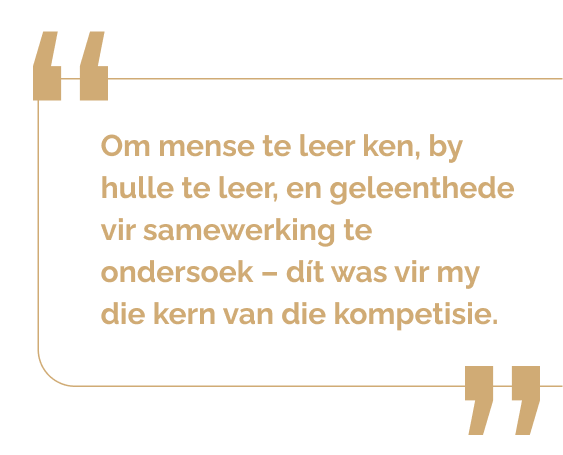“Om mense te leer ken, by hulle te leer, en geleenthede vir samewerking te ondersoek – dít was vir my die kern van die kompetisie.”