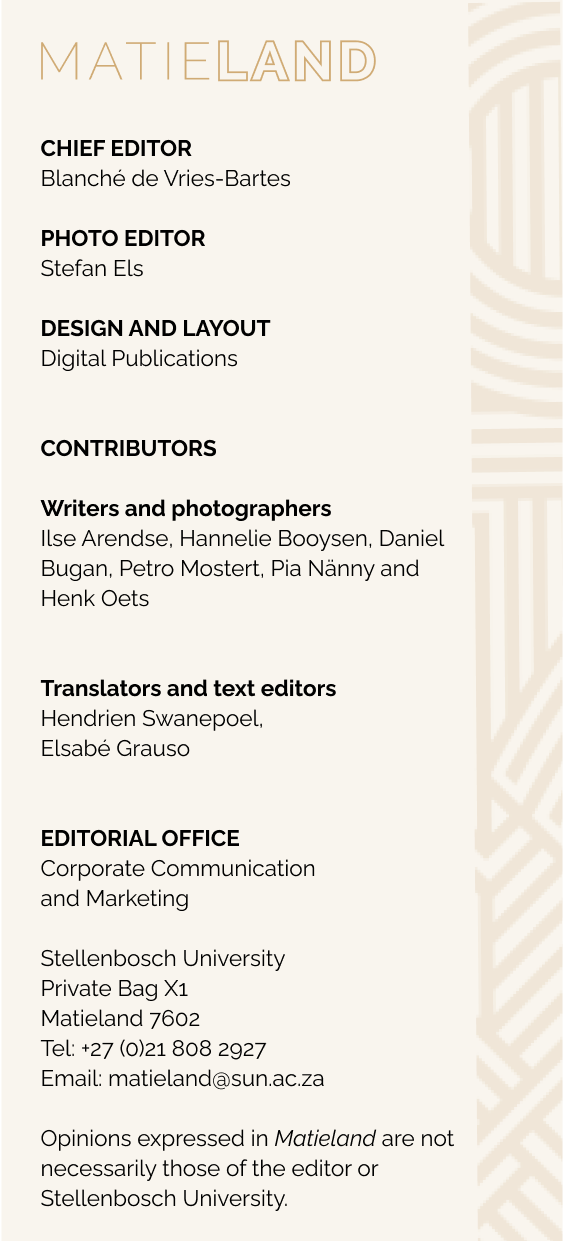 En dan is daar Luther Chipembere, wie se doelgerigtheid om hongersnood te bestry uit persoonlike ervaring spruit. As die eerste navorser van die Universiteit Stellenbosch om die FameLab Suid-Afrika-kompetisie te wen, help hy die wêreld nuut dink oor hoe ons voedselonsekerheid voorspel en hanteer. Soos sy werk ons wys, gaan dapper denke nie net oor innovasie nie, maar ook oor empatie en verantwoordelikheid.